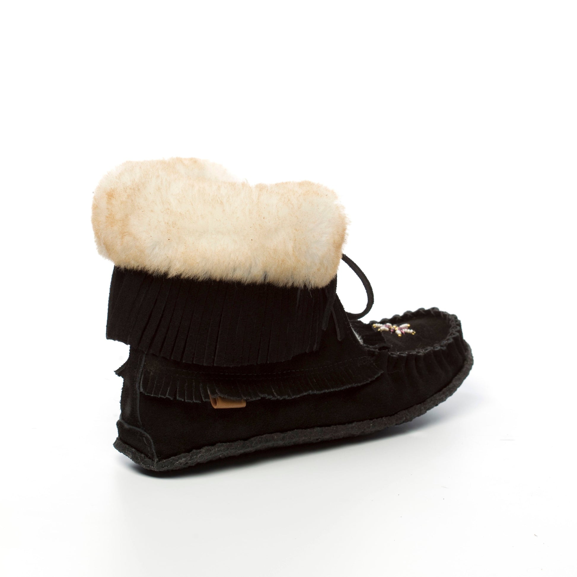 Beyond their exceptional warmth, these boots are designed for everyday wear. The traditional Gum rubber sole provides excellent traction on icy surfaces while remaining gentle on indoor floors, making them perfect for transitioning seamlessly from the outdoors to indoors. The ankle-high design offers both support and style, while the handsewn glass beaded starburst pattern adds a touch of unique artistry.