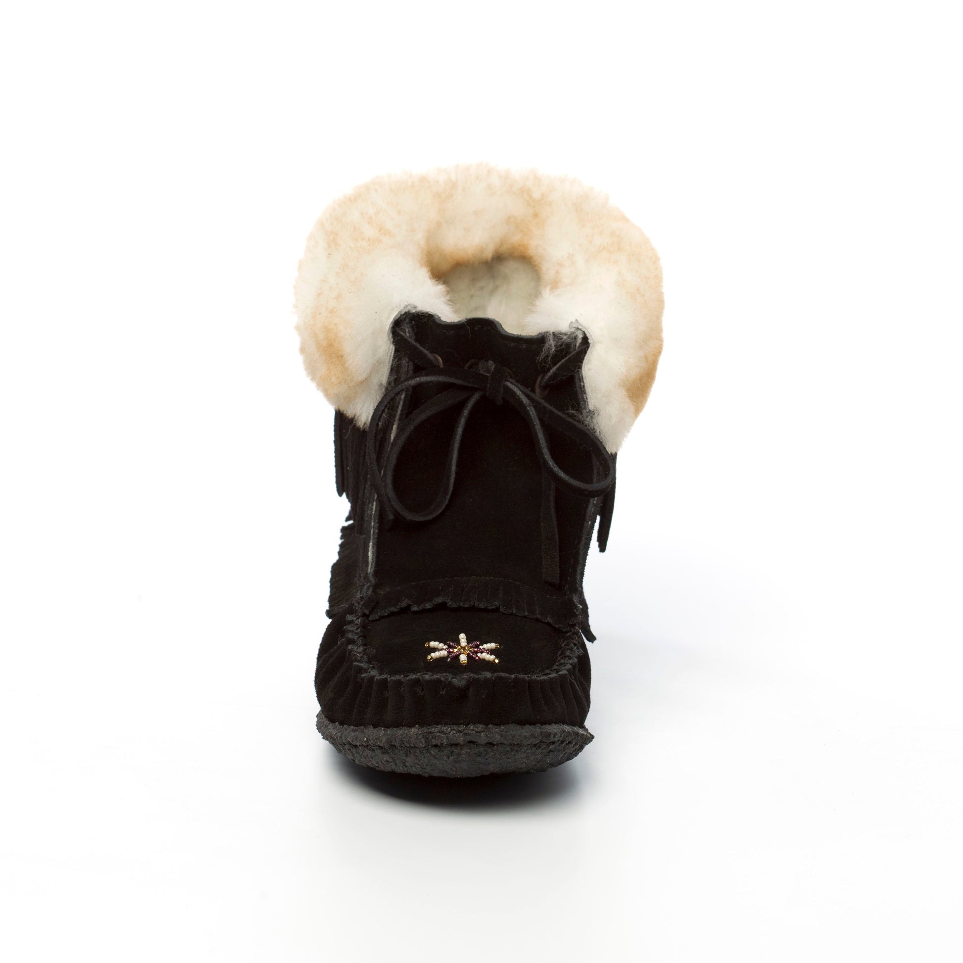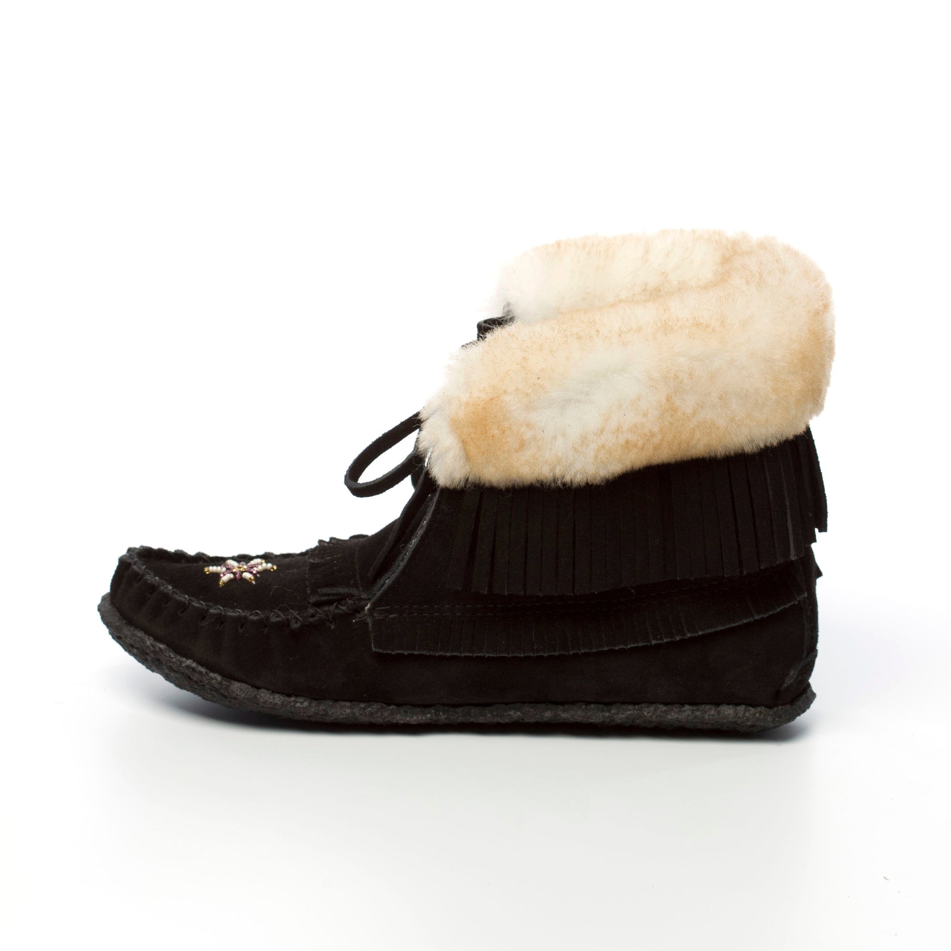 Women's Black Suede Sheepskin Lined Concho Mukluk Boots With Fringe