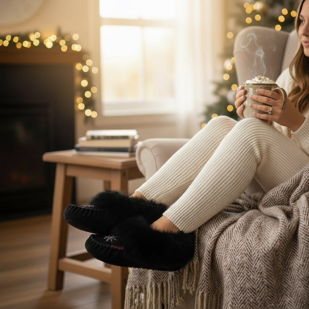 Indulge in the ultimate luxury of comfort and style with our Aboriginal rabbit fur moccasins.