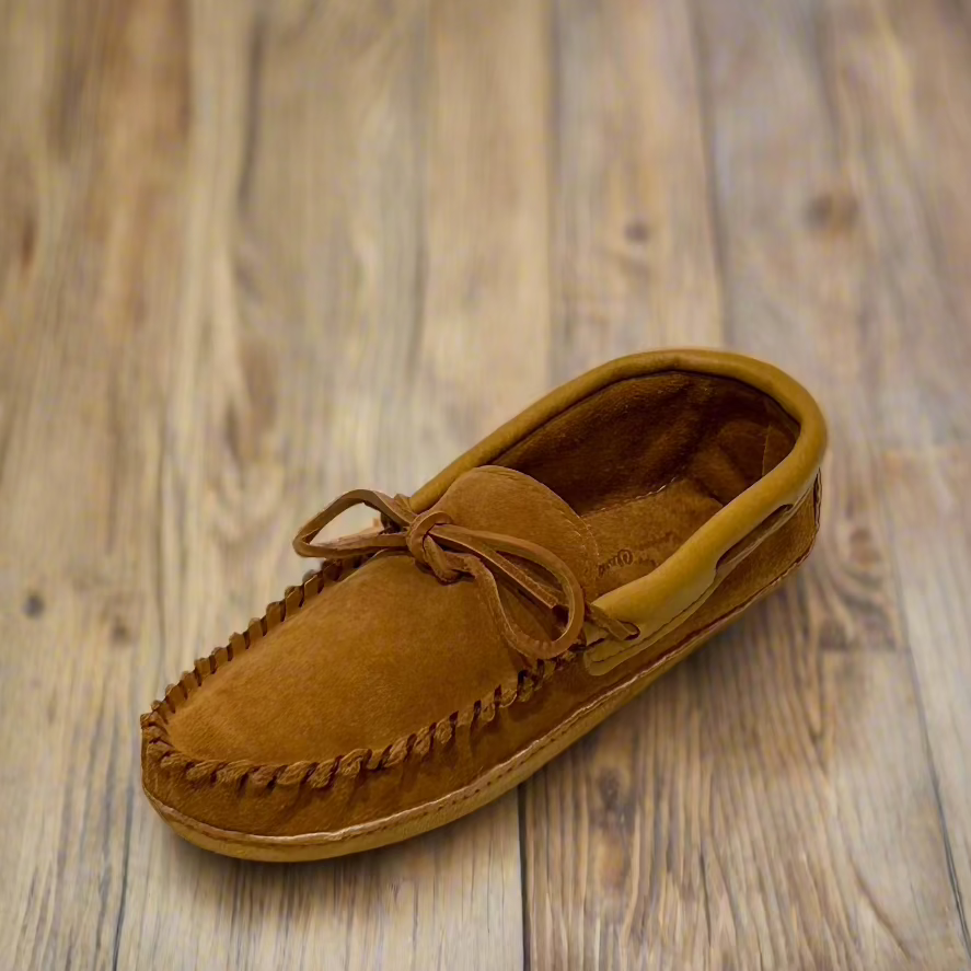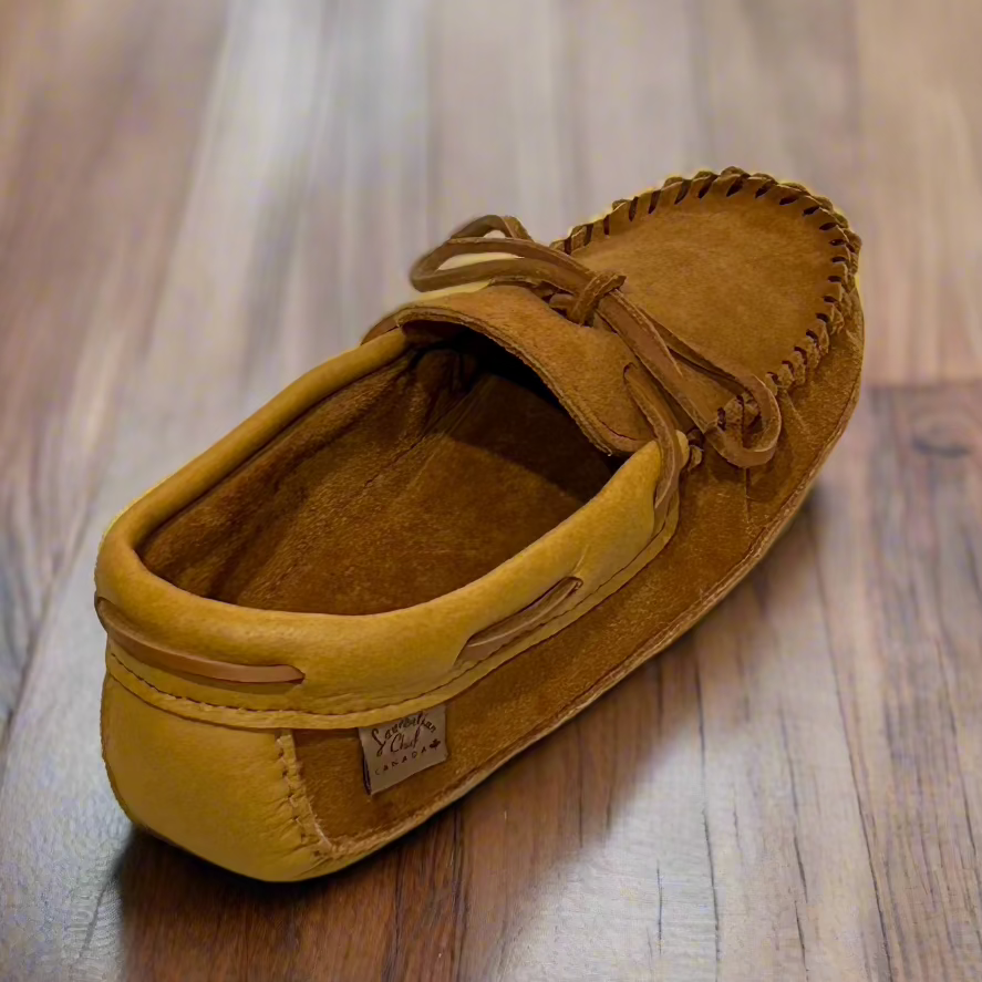 Experience the epitome of luxury and comfort with our handcrafted men's dark tan suede moccasins. Meticulously crafted in Canada, these slippers offer a harmonious blend of style, durability, and versatility.