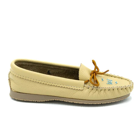 Women's Natural Cowhide Driving Moccasins Beaded Indian Sole (Please Allow 2 to 3 weeks to arrive)