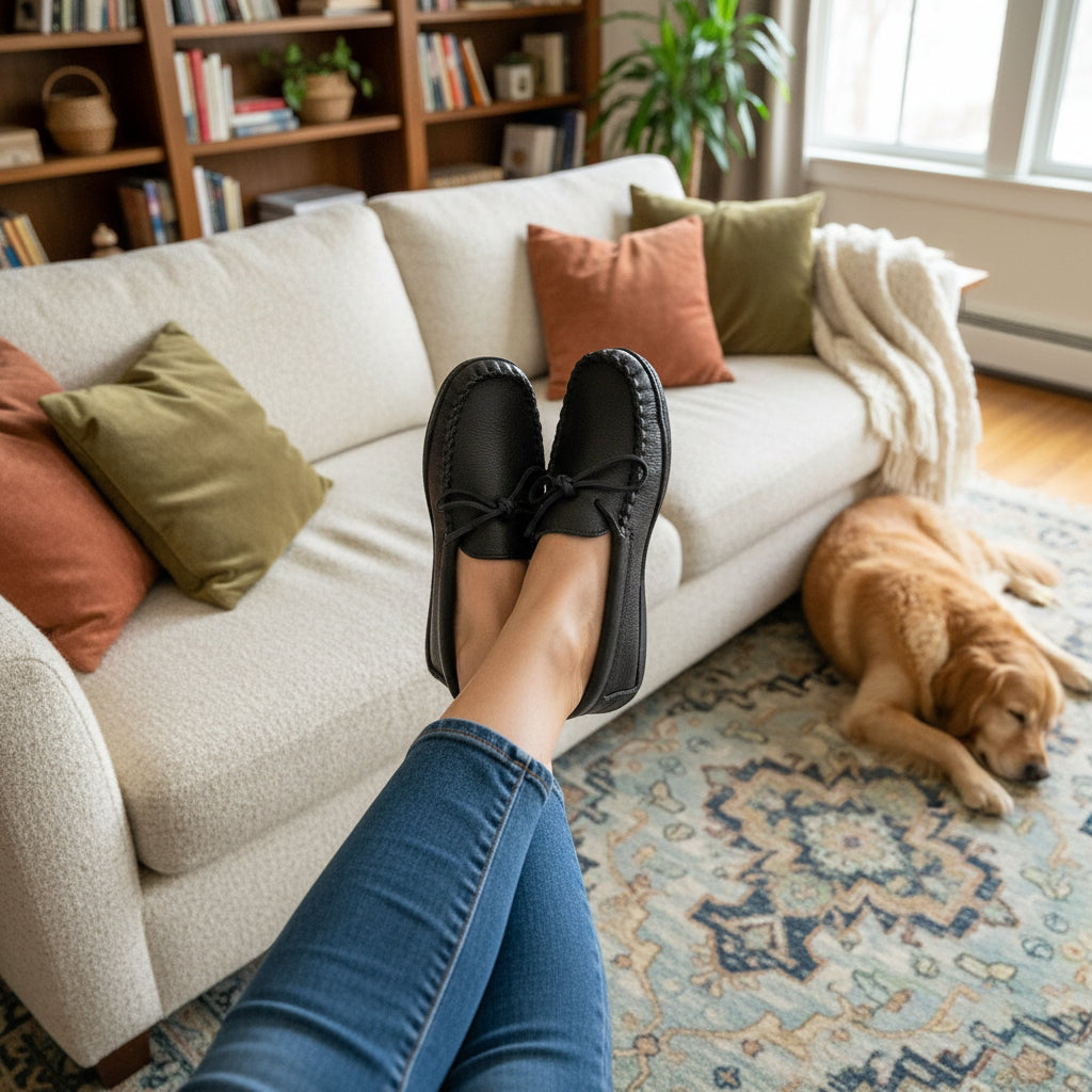 Indulge in Timeless Comfort: Tecumseh Canada Black Leather Moccasins