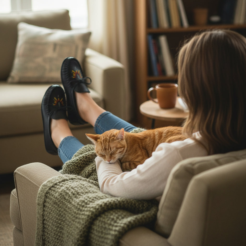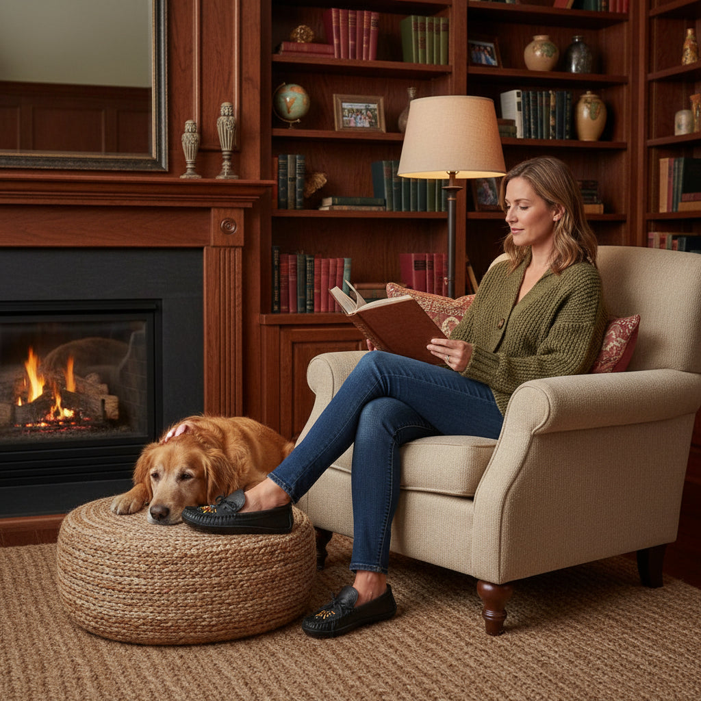 Taourenche Sunrise Women's Black Beaded Moccasins | Handcrafted Indigenous Leather
